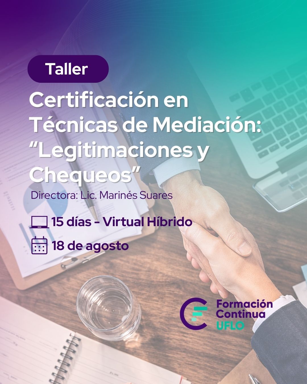 | Beneficio especial | Inscribiéndote en 2 o más cursos del ciclo de Mediación, accedés a un descuento exclusivo. Solicitá tu código de descuento para aplicar este beneficio (consultasfc@uflouniversidad.edu.ar) |